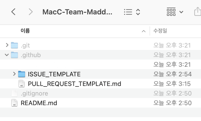 2. Shift + Command + . 눌러서 숨김파일을 보이게 합니다.