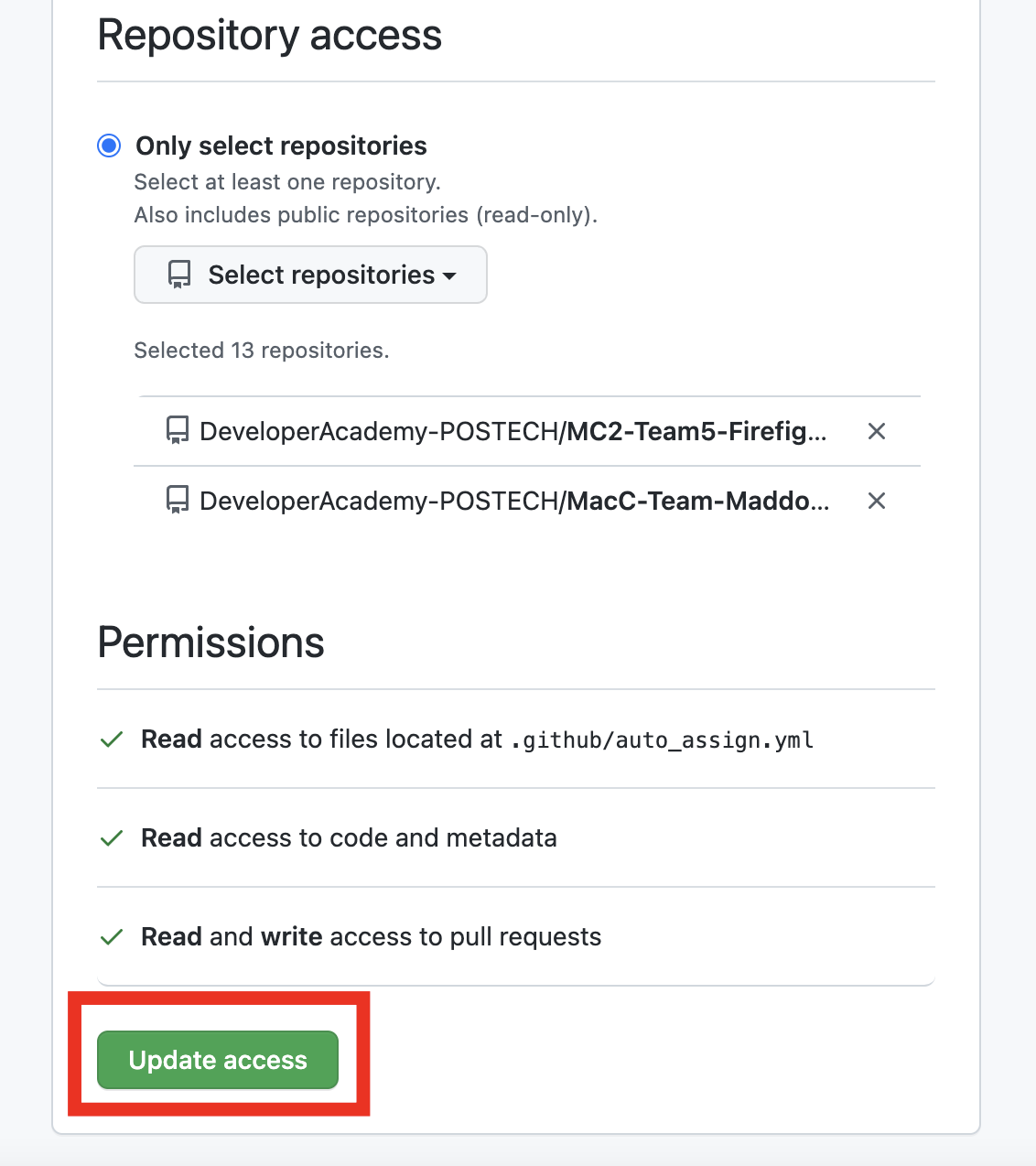 5. Update access를 눌러 업데이트 합니다.