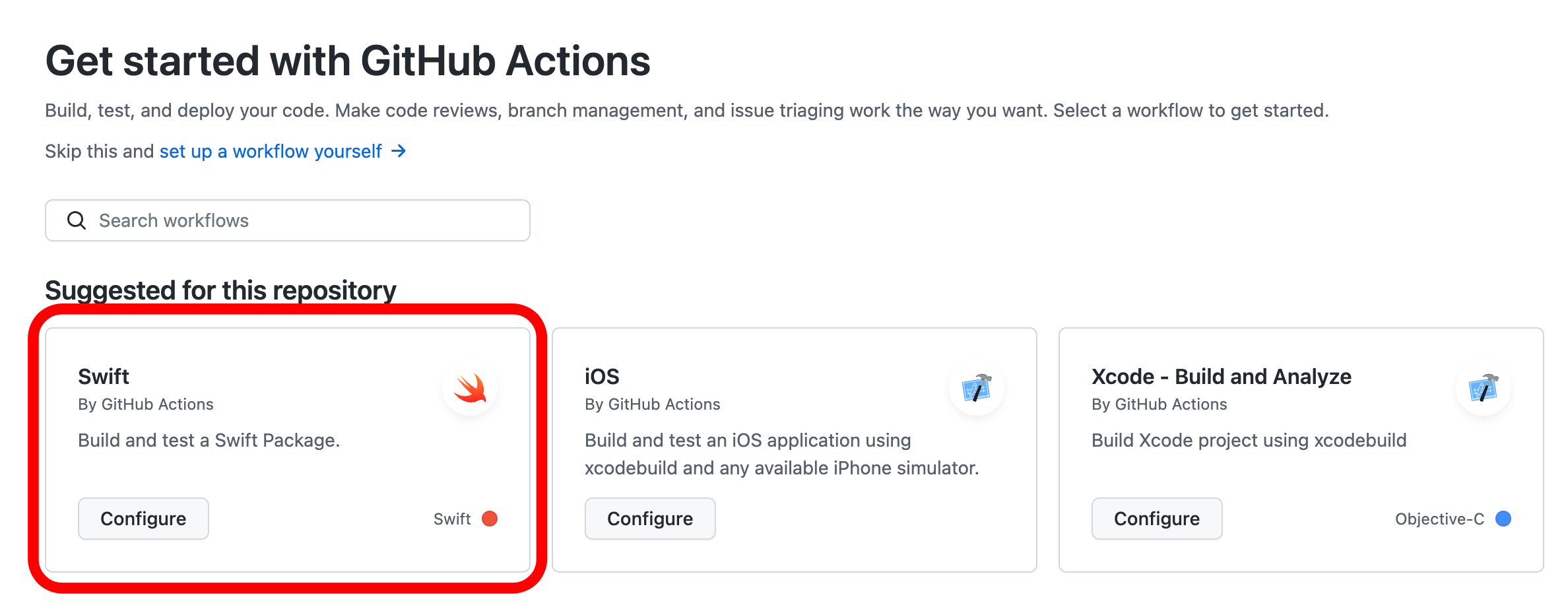 현재 프로젝트 Repository 이름 / .github / workflow / swift.yml