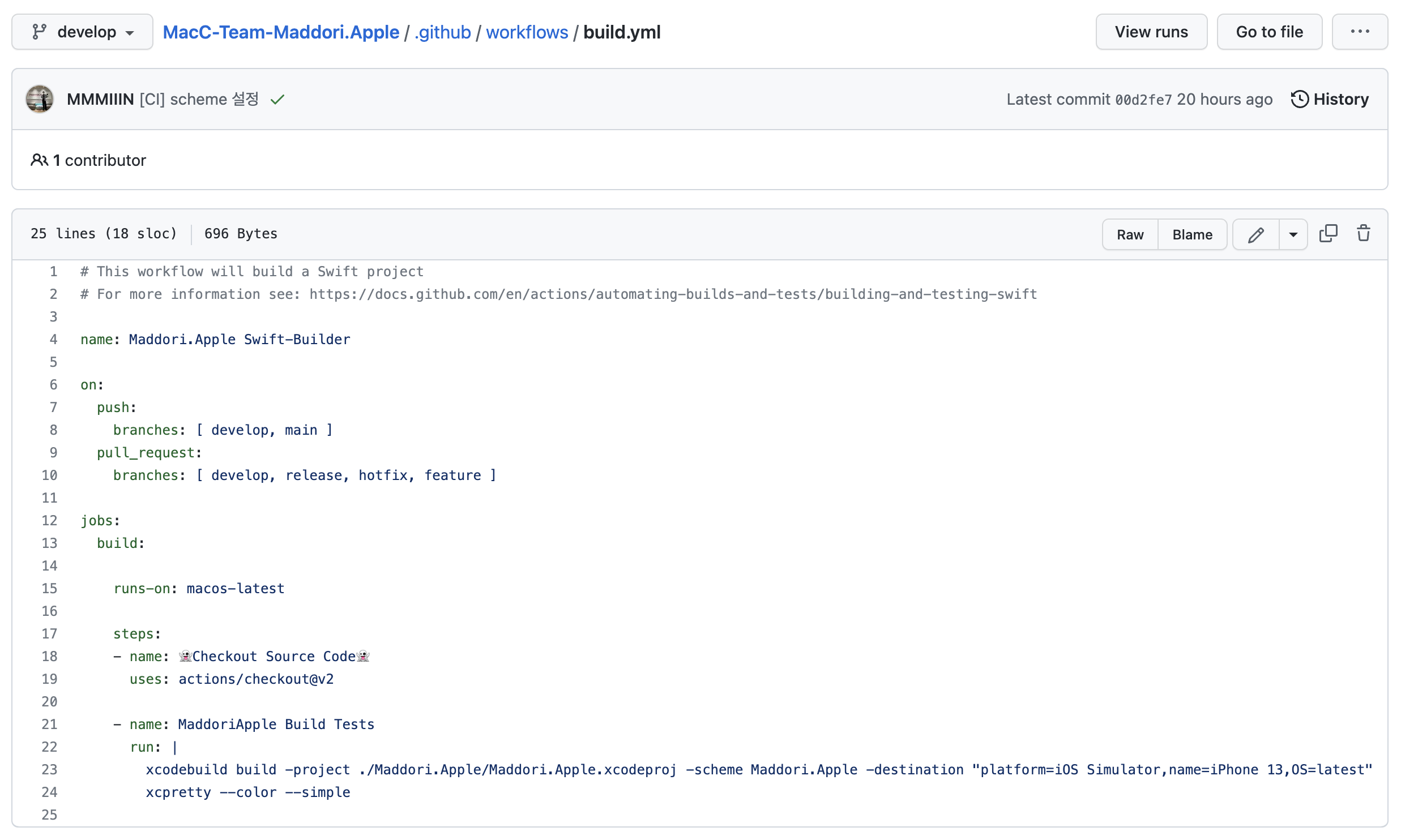 우리팀 규칙으론 develop에서 작업은 원칙적으로 금지였지만, CI관련 작업이었고, 현재 앱 심사 제출해놓고 살짝 뜬 기간이 있어서 후딱 설정했다.
