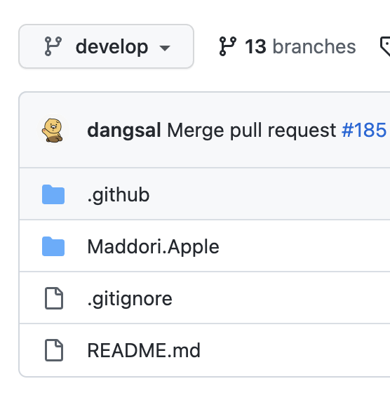 우선은 특정 브랜치를 생성해서 진행한 게 아니라 develop 브랜치에서 진행했다.