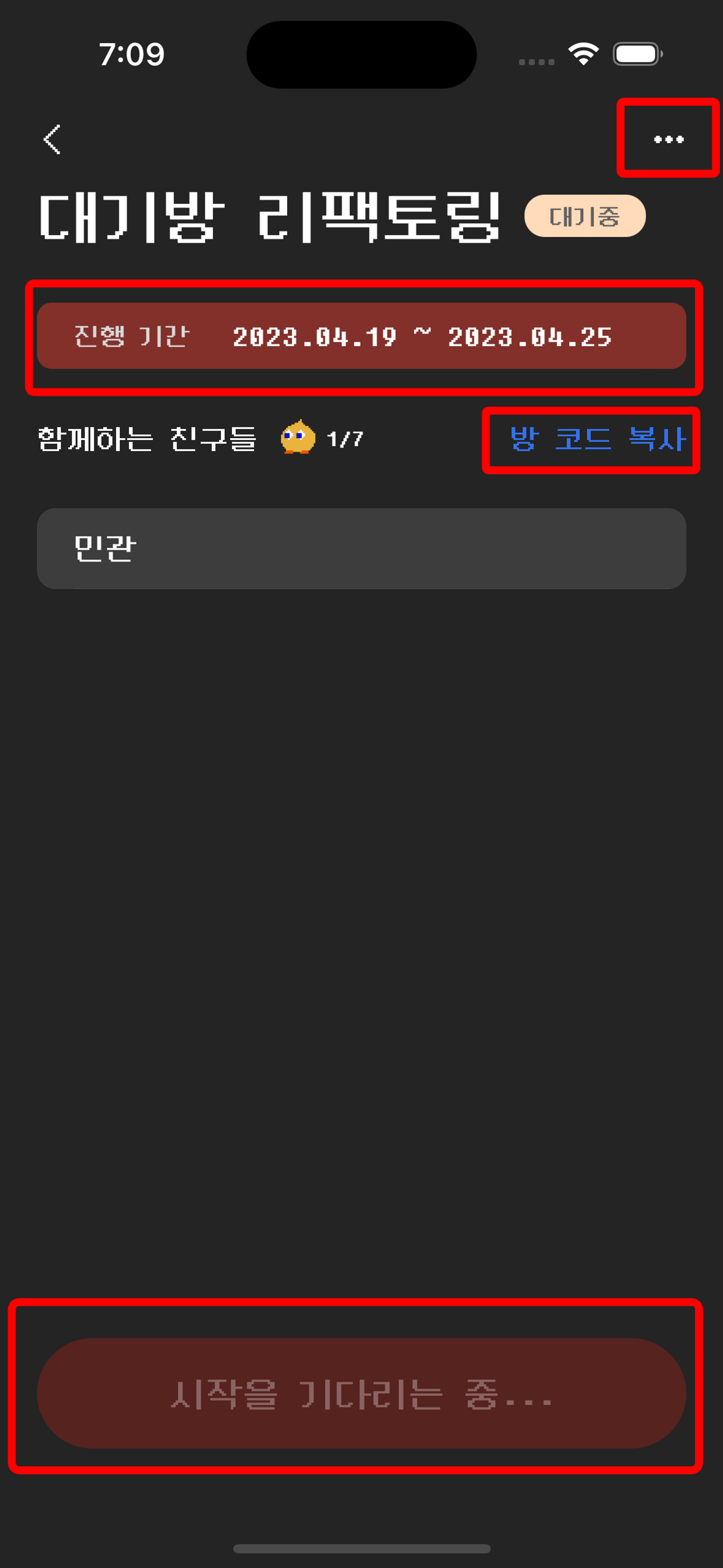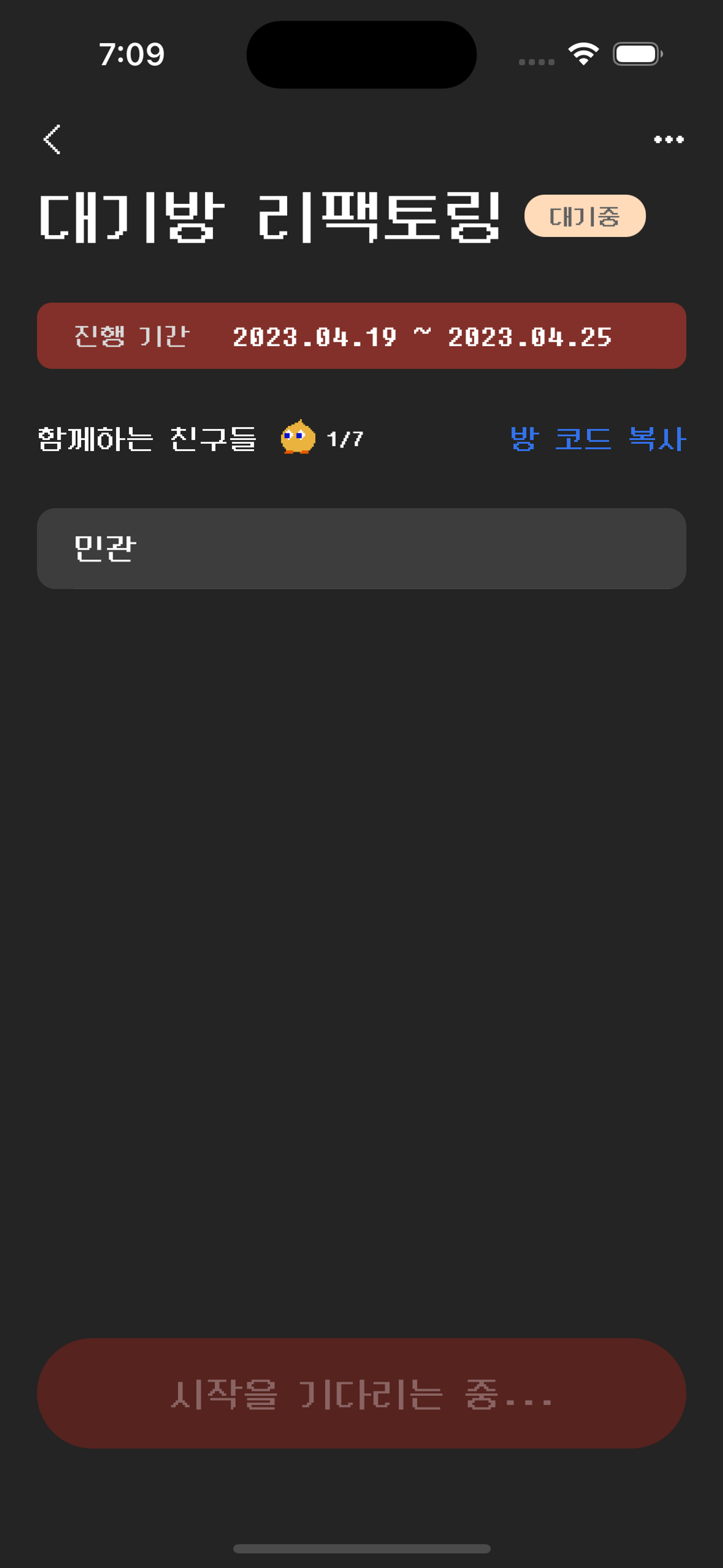 리팩토링 할 대기방 화면