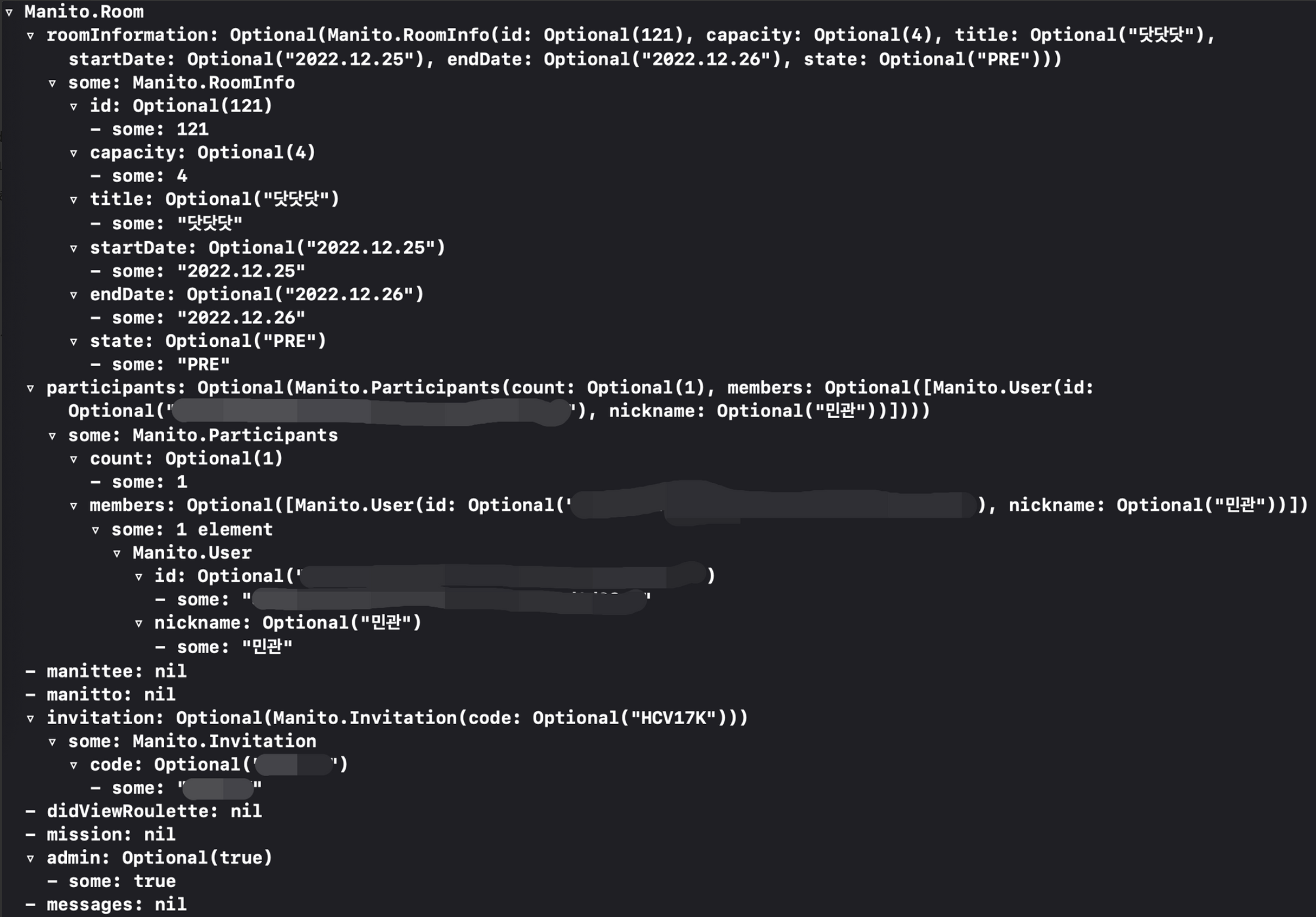 위와 같이 roomInfo 를 확인해볼 수 있다.