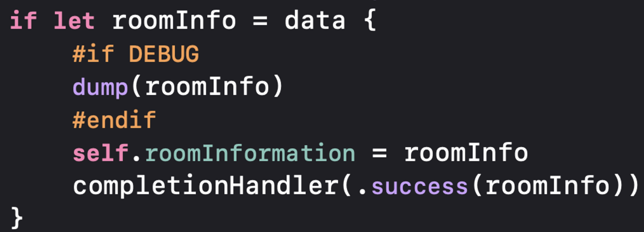 if let roomInfo = data 즉, 네트워크 통신이 성공적으로 이루어지면(디코딩된 데이터가 있으면) if let 내부로 들어가서 successs 를 completionHandler 로 넘겨주고, 실패한다면 catch 구문에서 failure 를 넘겨준다.