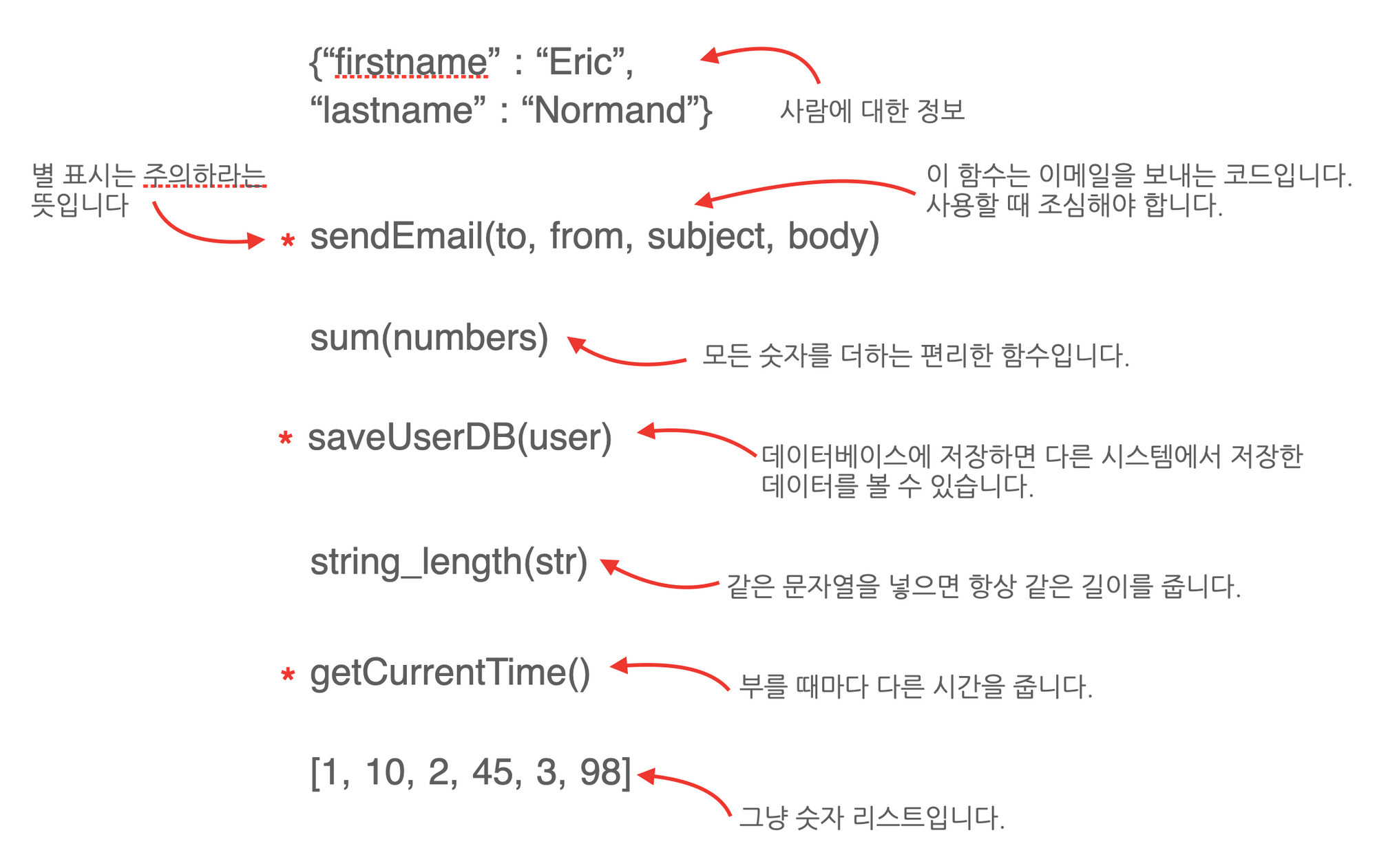 별 표시가 있는 함수는 언제, 얼마큼 호출하는지가 중요하기 때문에 부를 때 신중해야 합니다. 중요한 이메일을 중복으로 보내거나 전송이 안 되는 것을 바라지는 않을 것입니다.