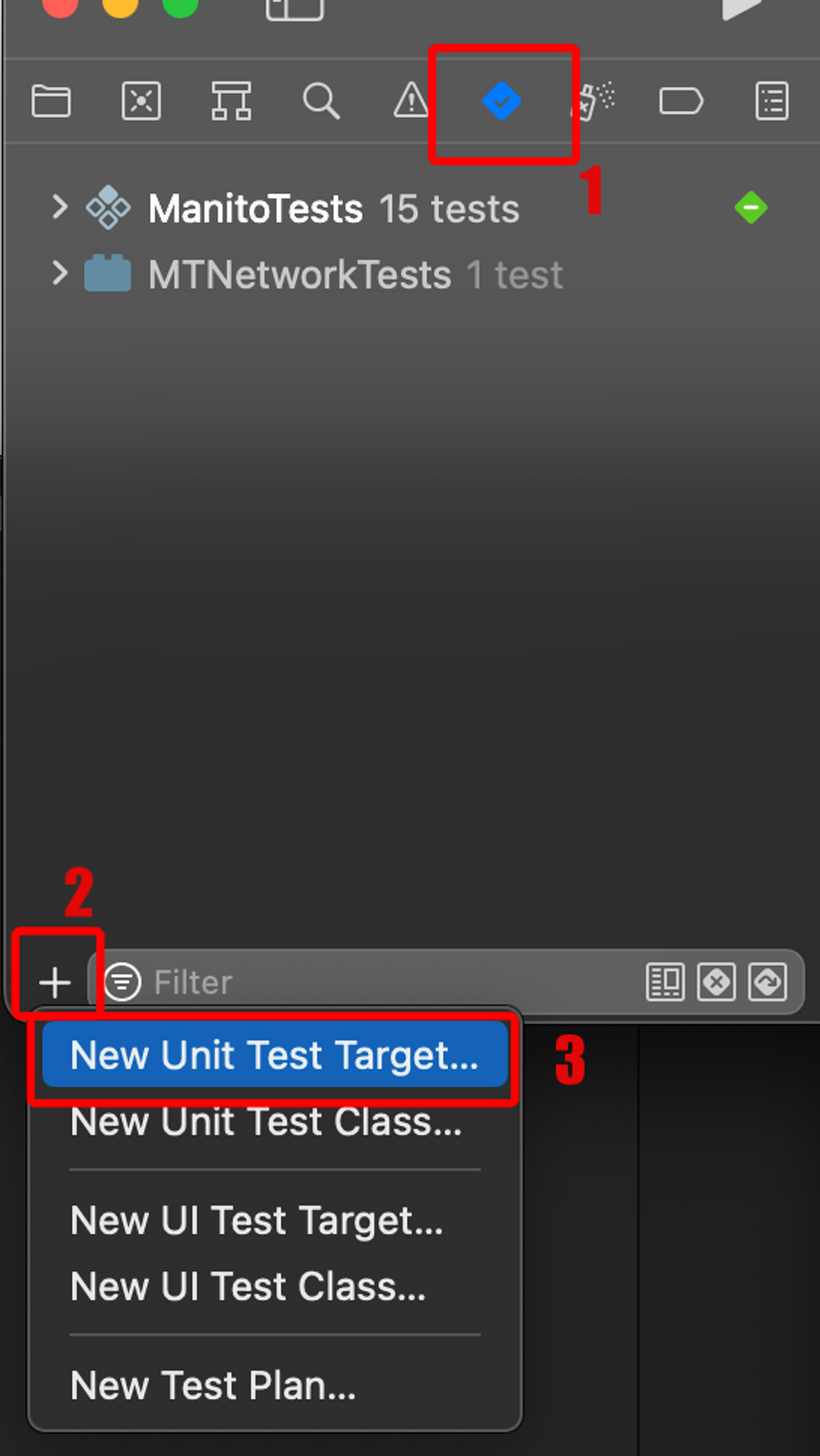 위 사진 순서대로 Test Target을 추가하면 된다.
