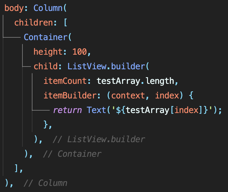 근데 실제로 body안에 리스트 이외에 다른 위젯을 추가하고 싶어 Listview을 Column로 래핑하는 경우가 생긴다.