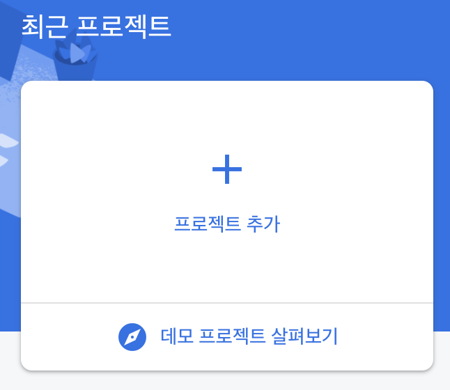 google 로그인 이후 firebase 콘솔로 이동해서 프로젝트 생성 클릭