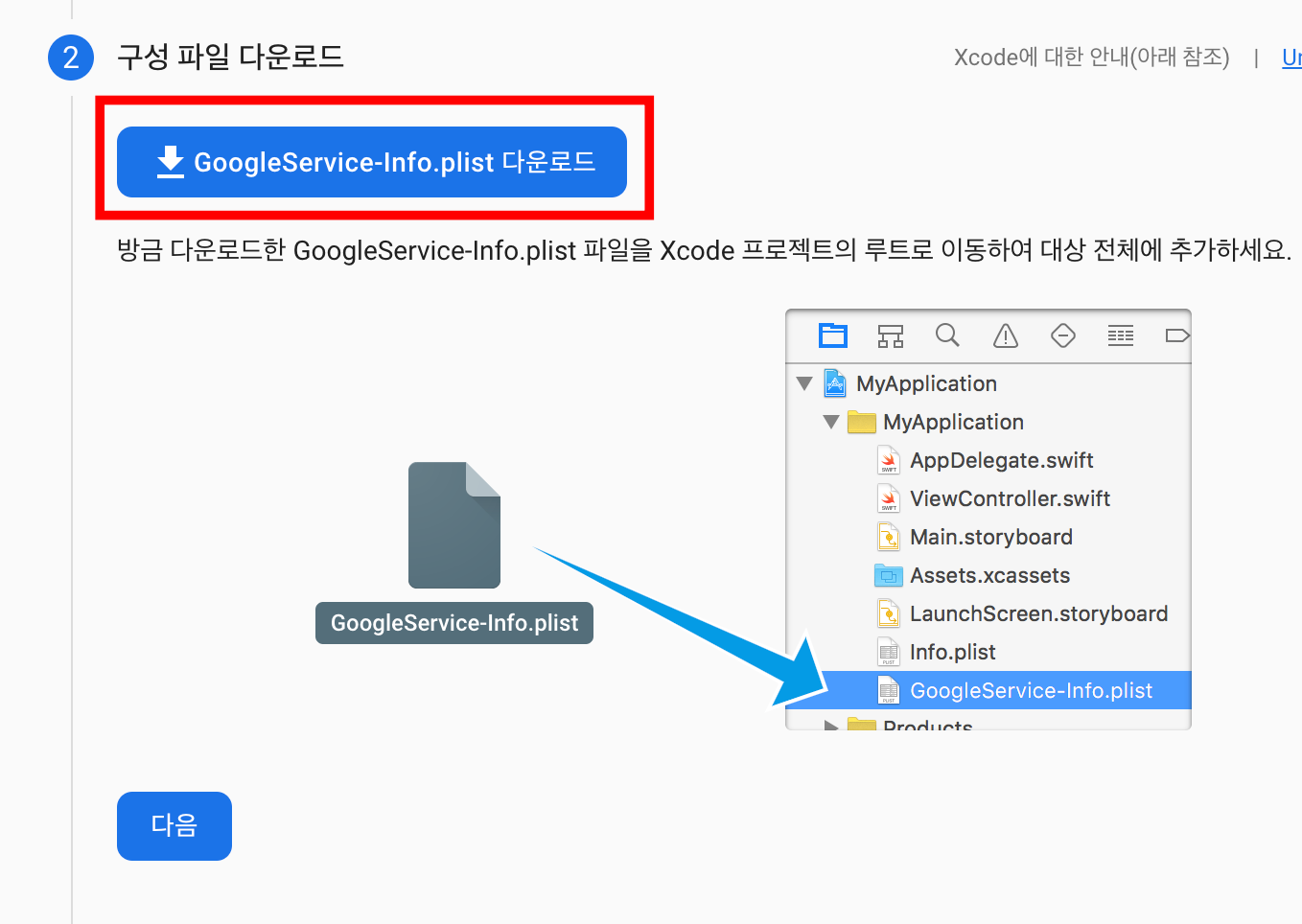 해당 plist파일을 다운 후 프로젝트 파일 내부에 넣으면 된다